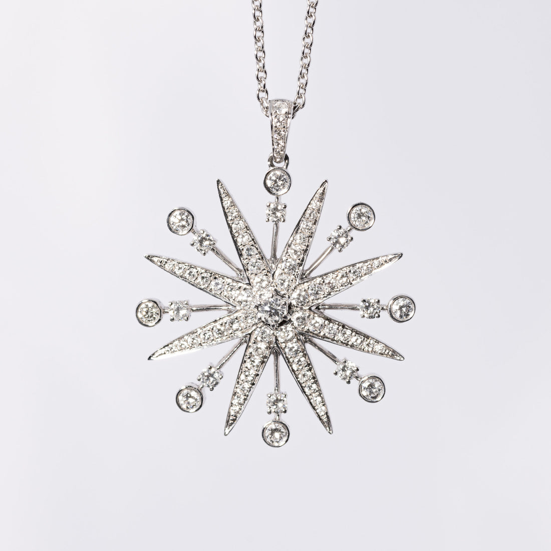 This exquisite diamond pendant features a dazzling arrangement of ethically sourced diamonds, beautifully set in a delicate metal frame. Its elegant design showcases a perfect blend of modern sophistication and timeless charm, making it a versatile accessory for any occasion. Whether worn alone or layered with other pieces, this pendant radiates brilliance and captures the light with every movement, making it an ideal gift for a loved one or a luxurious treat for oneself.