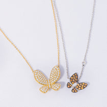 This stunning gold and diamond butterfly necklace beautifully combines elegance with a touch of whimsy. The intricately crafted butterfly pendant showcases shimmering diamonds that catch the light from every angle, set against a backdrop of lustrous gold. Its delicate design symbolizes transformation and grace, making it a perfect accessory for both everyday wear and special occasions. This enchanting necklace is not only a timeless piece of jewelry but also a thoughtful gift for someone special, representing beauty, freedom, and new beginnings.