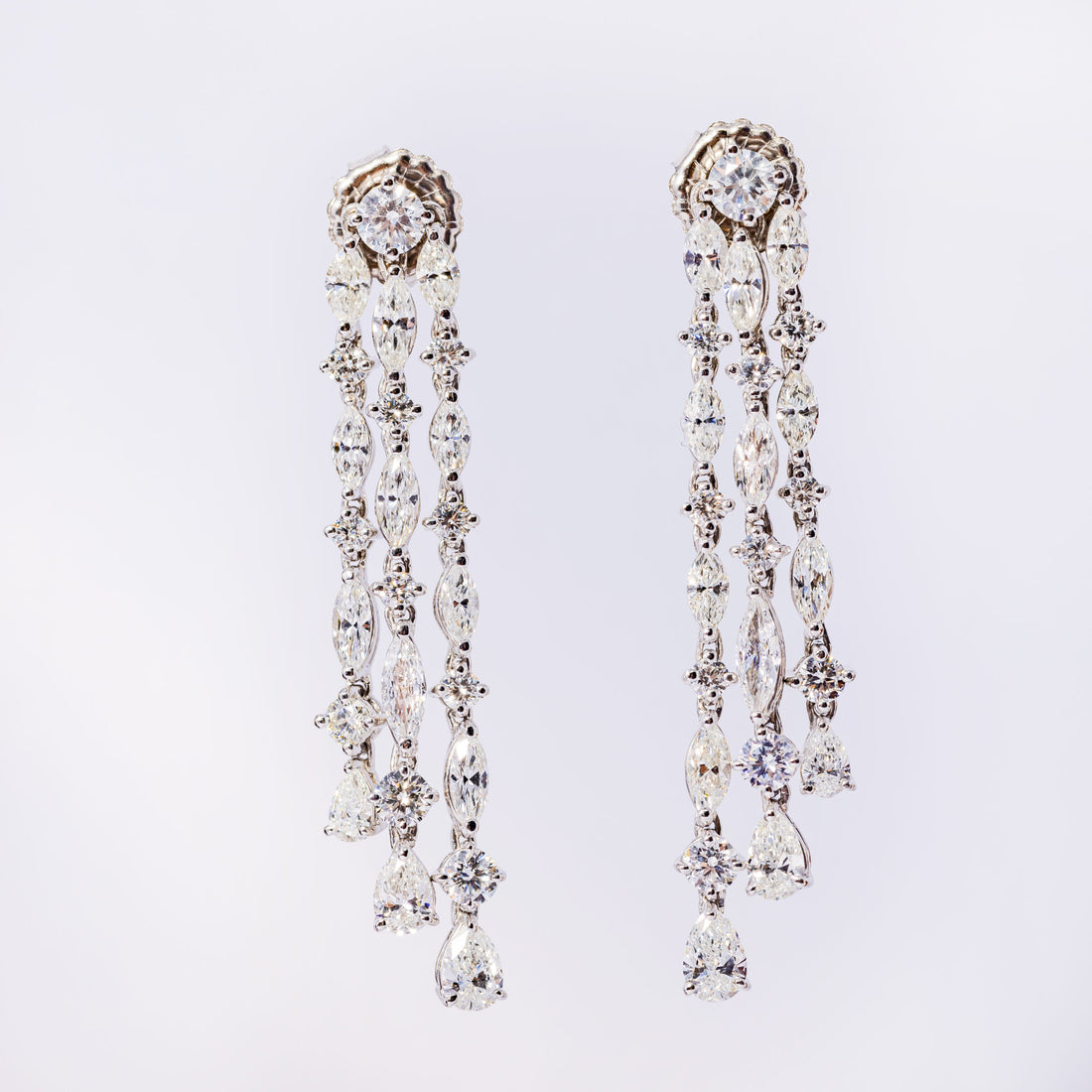 The marquee and round chandelier earring is a breathtaking jewelry piece that encapsulates glamour and sophistication, making it an exquisite choice for special occasions or elegant evenings out. Featuring a striking combination of marquee-shaped and round-cut crystals or gemstones, these earrings showcase a stunning interplay of shapes that captivates the eye, with elongated marquee stones adding a touch of modern flair through their sleek, tapered design, while the round stones introduce classic charm, creating an overall effect that is both bold and timeless. The chandelier design enhances the earrings' allure, allowing them to dangle gracefully and catch the light with every movement, producing a radiant sparkle that draws attention. Often crafted in high-quality materials such as sterling silver, gold, or rose gold, these earrings can be adorned with shimmering diamonds or vibrant colored stones, elevating their elegance even further. Whether worn with an evening gown or to complement a more casual outfit, the marquee and round chandelier earring makes a statement of sophistication and style, adding a touch of luxury and a dash of drama to any look, and with their exquisite design, they are sure to become a coveted favorite in any jewelry collection.
